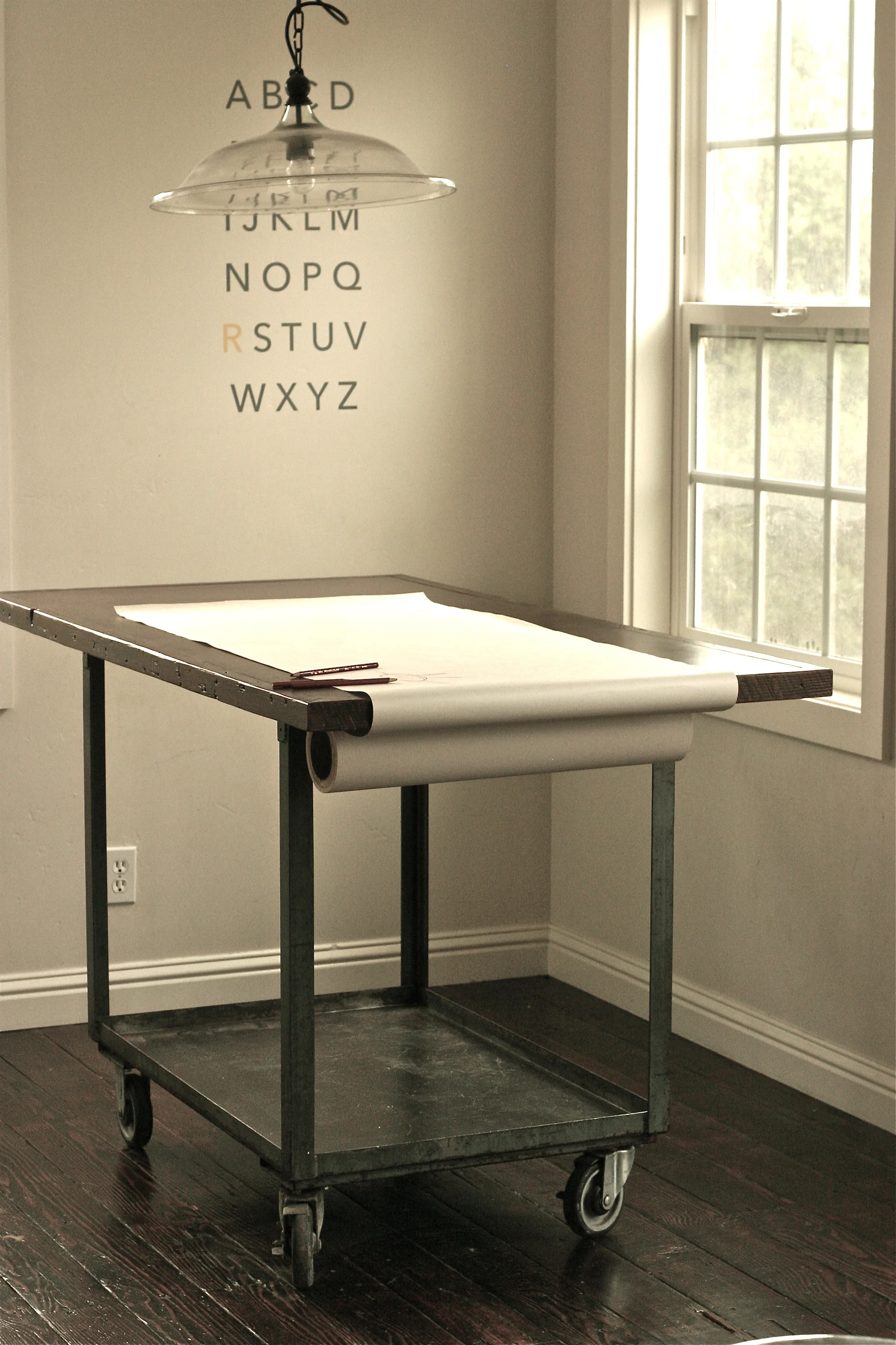 The cart had a handle running along the back side. I cut it on one end to accommodate a roll of art paper.