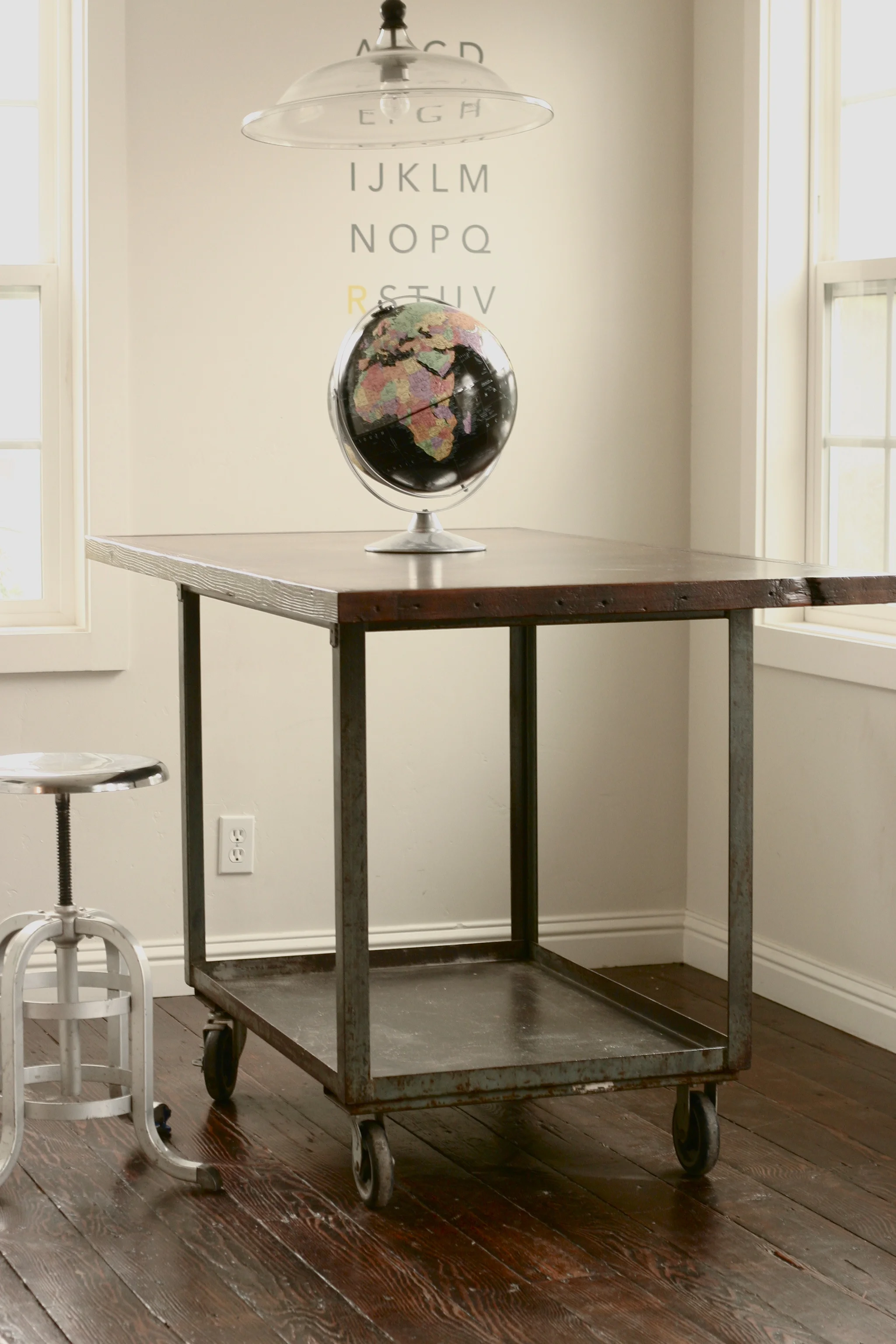 I built this school table for the boys using an old steel utility cart and some reclaimed lumber.