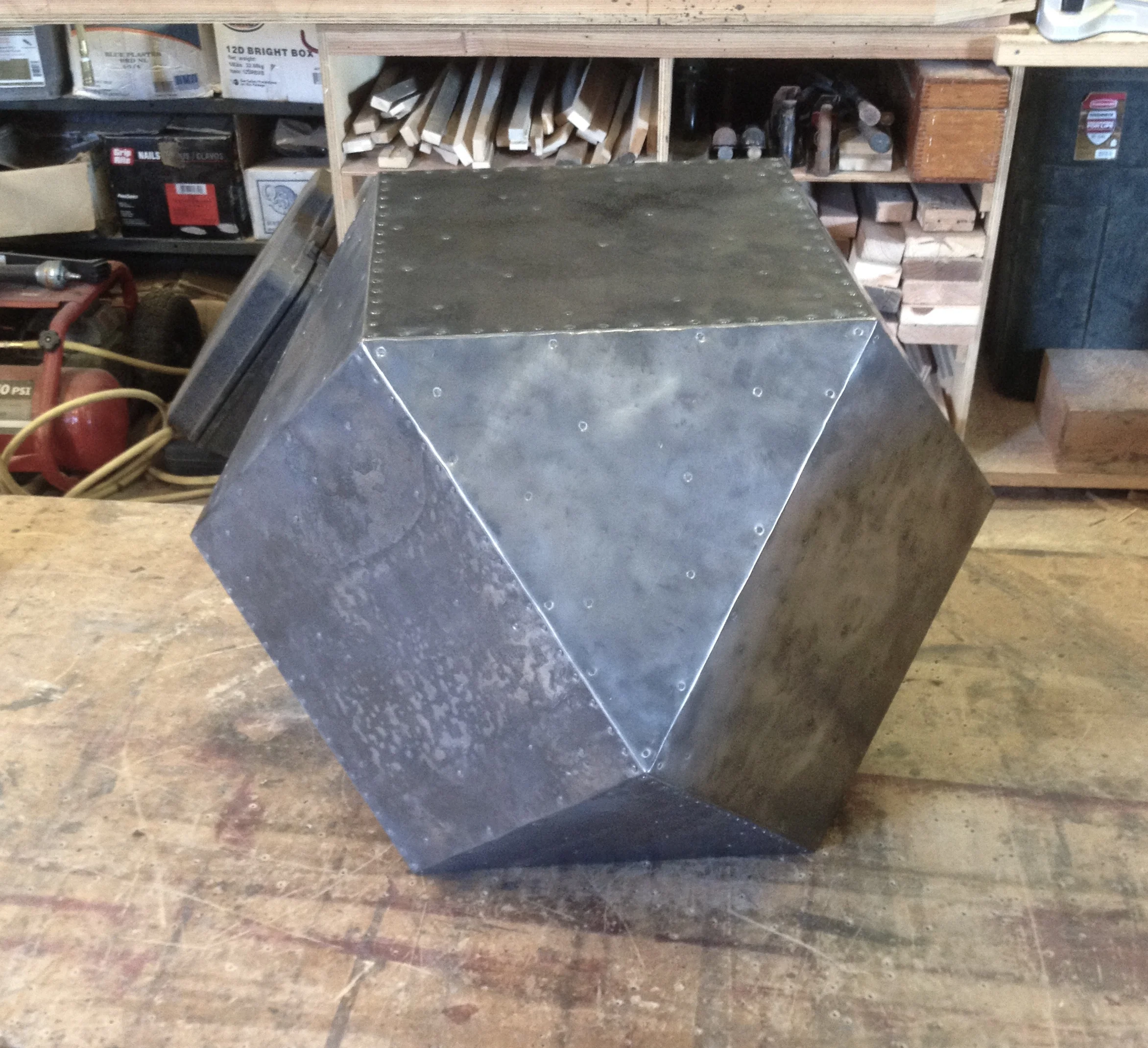 August 20, 2014 Geodesic Side Table August 20, 2014/ Ben Riddering Zinc clad side table / nightstand. 22" high, 22" wide.