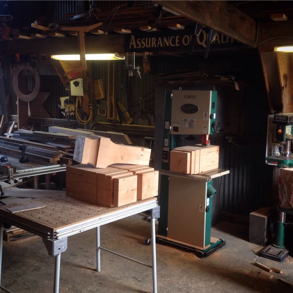 April 09, 2015 Console Table Pedestals April 09, 2015/ Ben Riddering Bandsaw cut square pedestals for a couple of custom console tables. Made from reclaimed douglas fir.
