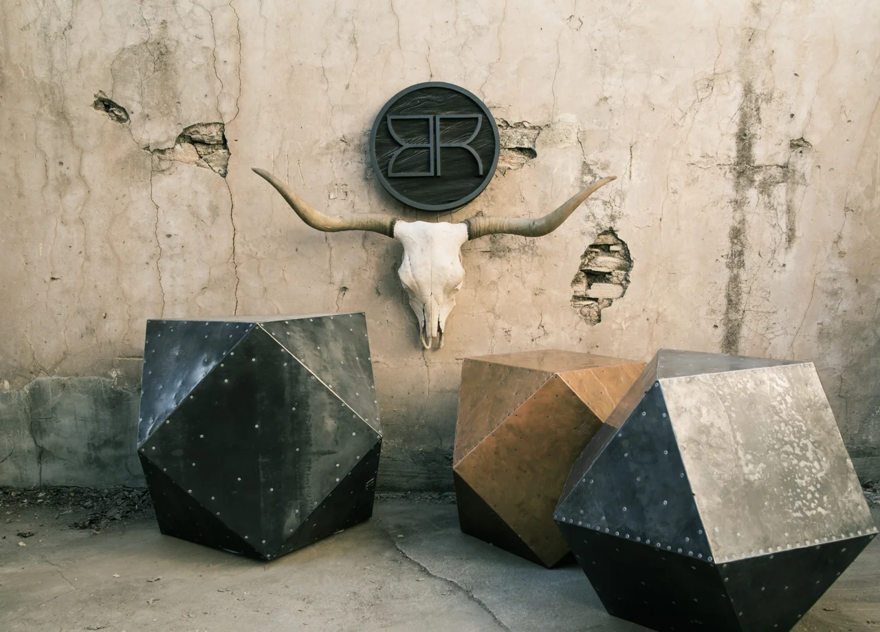 Each steel Cubodron side table is hand-clad with steel on all sides. The tables are metal-clad on all sides which allows them to be used upside down for a different look.